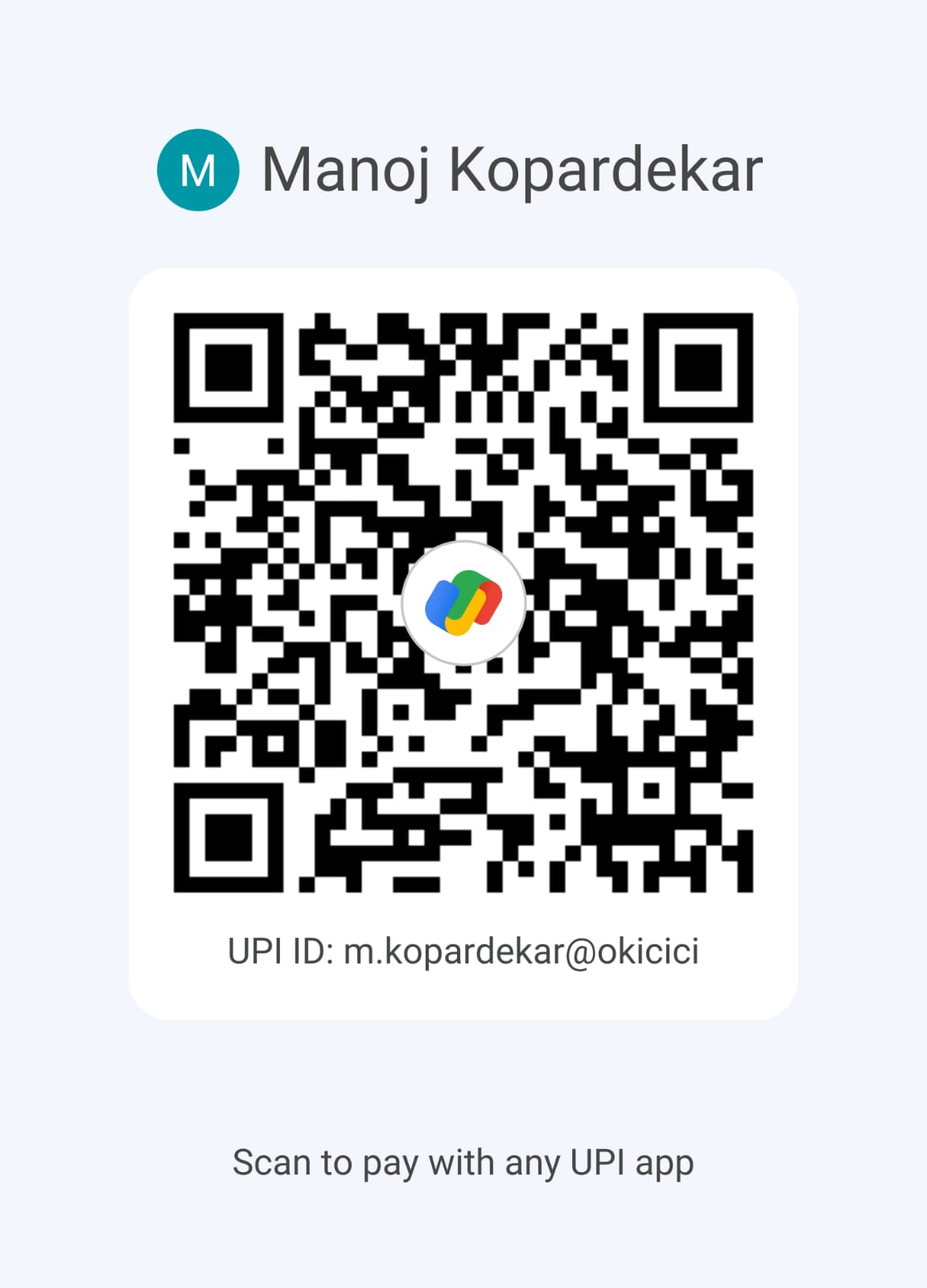 the GPay / UPI QR code below.
